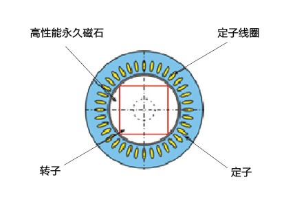 ◆ 永磁同步電機采用高性能釹鐵硼永磁體,120℃不失磁,使用壽命超15年。