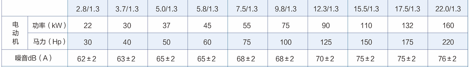 GSB系列(皮帶傳動)螺桿式空氣壓縮機技術參數(30kW-75kW)